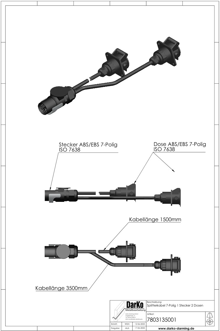 Splitterkabel 7-Polig 1 Stecker 2 Dosen